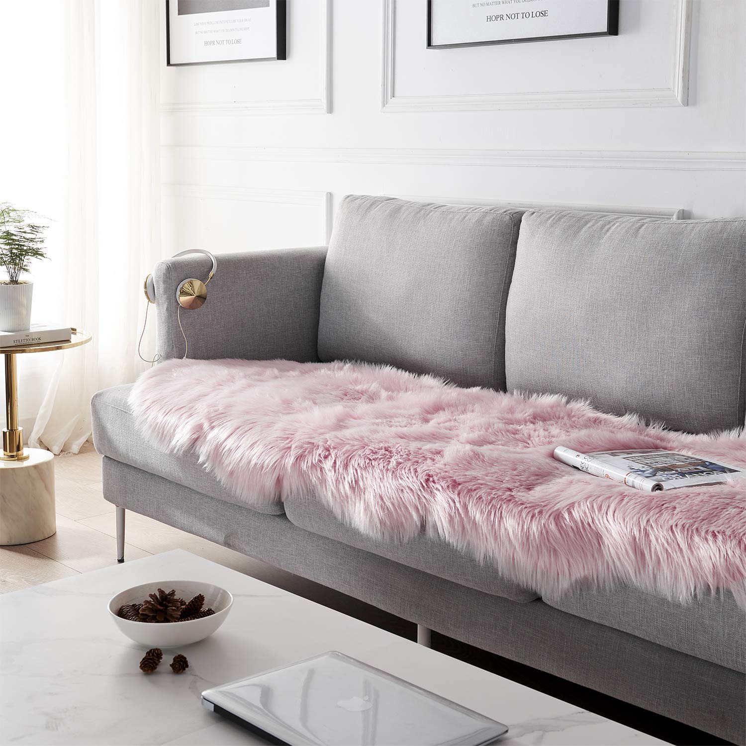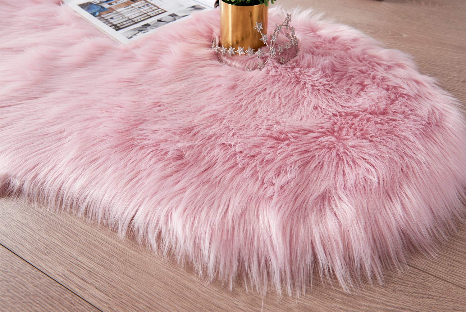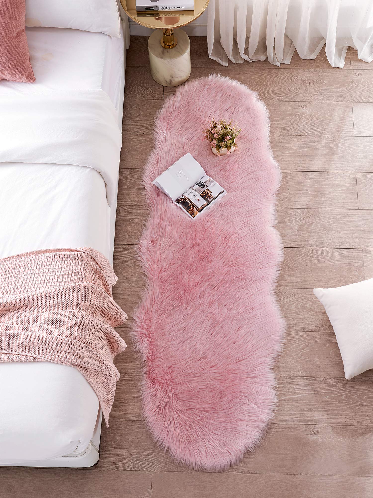 Ultra Soft Fluffy Rug Pink Faux Sheepskin Fur Rug Shaggy Couch Cover Furry Carpet for Kids Room Fuzzy Plush Rug for Bedroom Living Room Runner, 2x6 Feet (Sheepskin Shape,Pink) - Pink is backordered and will ship as soon as it is back in stock.