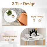Side Table 2-Tier Wooden Round End Beside Table Nightstand Metal Frame