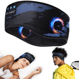 - Bluetoth Sport Headband & Sleep Headphones & Wireless Earphones & Sleep Mask 4 in 1: Bluetooth headband allows you to listen to music without having to wear additional headphones, and protects you from being disturbed by your messy hair and sweat. The ultra-thin flat headphone speakers are comfortable enough to wear while lying down or sleeping on your side. The comfortable sleep headband can also be used as an eye mask to block the dazzling light while you sleep.