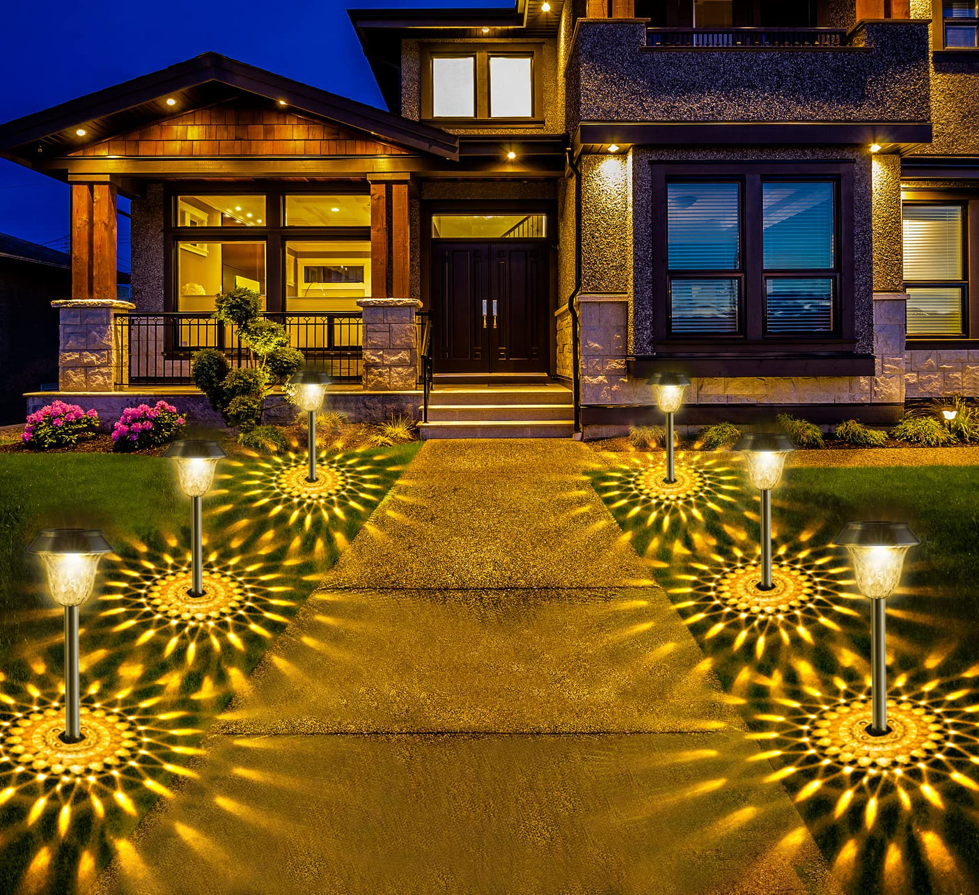 - High Brightness & Attractive Pattern: The waterproof solar outdoor Lights adopt thickened, rust-free, and corrosion-resistant materials, which are more durable than cheap solar garden lights. Solar Walkway Light features 15 Lumens, a clear plastic shade, and a spiral lighting pattern. LED path lights bring unique decorative appeal to your trails, gardens, houses, steps, lawns, yards, and walkways. They decorate your daily and holiday like Halloween & Christmas to add a finishing touch.