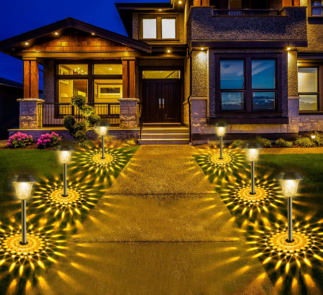 - Easy Installation: Solar outdoor lights do not require plugs and wires, just plug the installed solar floor light into the ground according to the instructions to get a bright solar path light. Solar pathway lights create a clearer beautiful pattern, you can install solar ground lights anywhere you want to decorate, easily decorate your lawn, patio, landscapes, pathways, gardens, and walkway, and make your home dazzling.