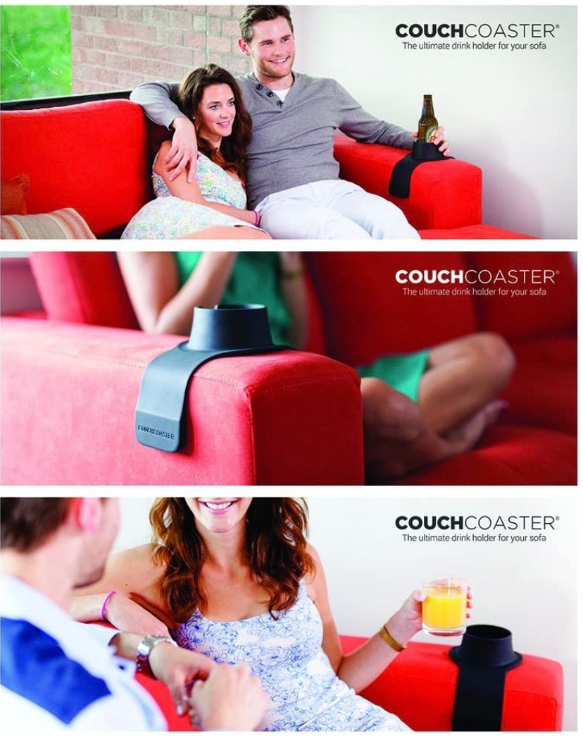 - NO MORE SPILLS: CouchCoaster - The ultimate drink holder for your sofa, is the original and patented drink coaster which securely holds all your favourite drinks - hot or cold - on your sofa, couch, armchair or recliner (fabric or leather).