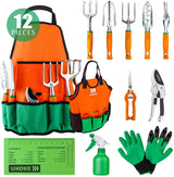 Garden Tool Set, 12 Piece Aluminum Hand Tool Kit, Garden Canvas Apron with Storage Pocket, Outdoor Tool, Heavy Duty Gardening Work Set with Ergonomic Handle, Gardening Tools for women men