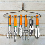 - High Quality Made This complete gardening tool set with 5 high-quality heavy-duty cast aluminium alloy hand tools is perfect for all your garden needs, such as a TROWEL for digging, a WEEDER for weeding, a RAKE loosening soil, a SPADE for transplanting and a CULTIVATOR for aerating soil. All the tools included in the garden kits with a user-friendly hanging hole - a hole at the top of each handle for clutter-free storage.