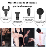 - For Health: Massage gun can help relax and relieve pains on feet, calf, shoulders, neck, back, muscle, arms, and legs. Also can help relieve muscle stiffness and soreness, increase blood pressure, improve the overall health of the body's soft tissues, in addition, it can prevent fascitis.