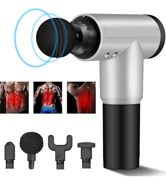 Vinteky Portable Muscle Massager Deep Tissue Percussion Vibration Massage gun for Athletes & Professionals Use for Body Aches & Workout (Silver)