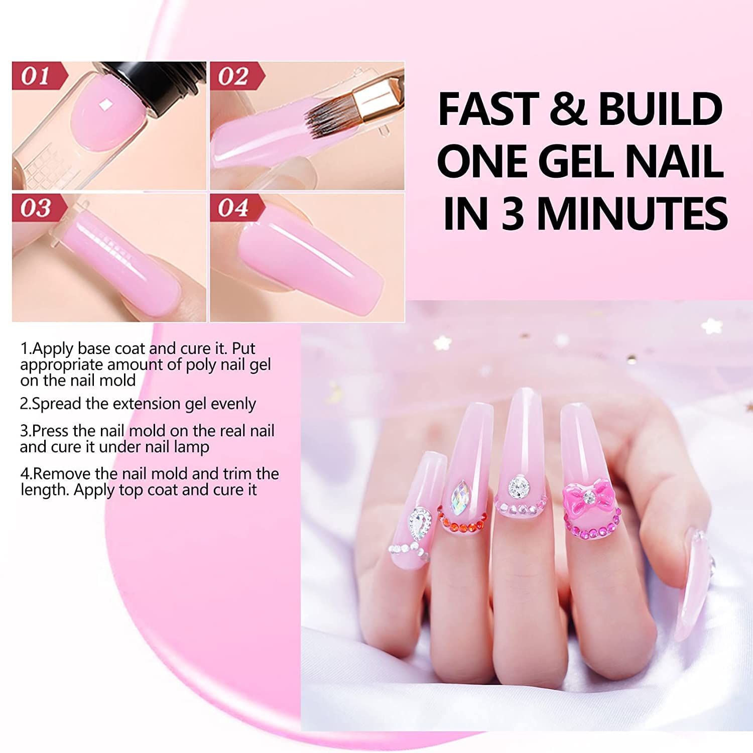- EASY to USE and QUICK NAIL EXTENSION GEL: Mainly made of natural resin, organic, lowest odor and no harm to your real nails, soft and easy to spread. With slip solution, the builder gel shapes smoothly in nail mold. Quick harden (UV lamp 2 mins; LED light 90s) Flexible enough to paint, stronger than acrylic nails and hard gel