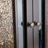 - STYLISH CABINET: Features a timeless dark espresso finish with amber glass mosaic doors, beveled trim, and rubbed bronze-finished knobs for a beautiful addition to your space