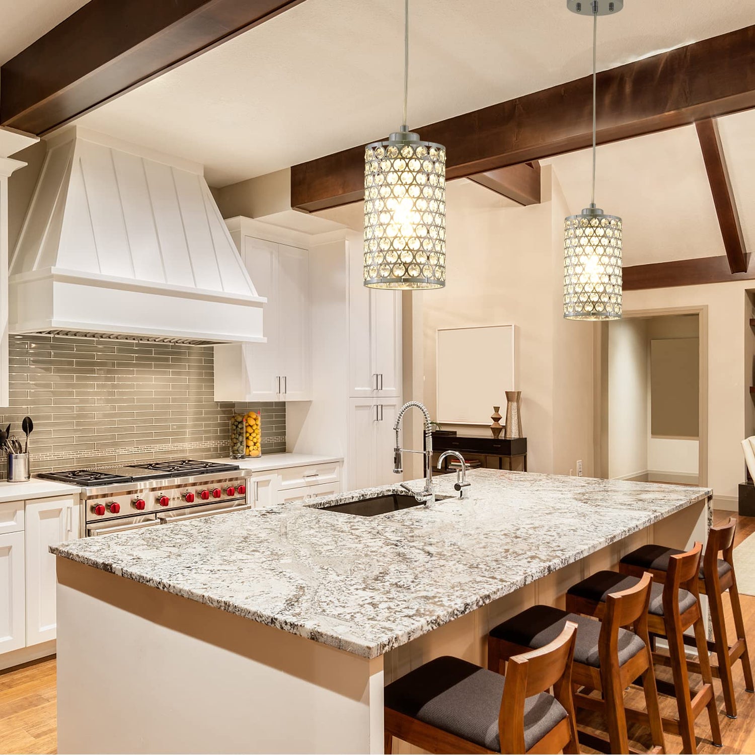 - Wide Application: Ideal for in a kitchen island, in a walk-in closet, or accent lighting in a bedroom or bathroom, this single cylinder pendant with crystal accents adds a touch of contemporary and luxurious style to any space.