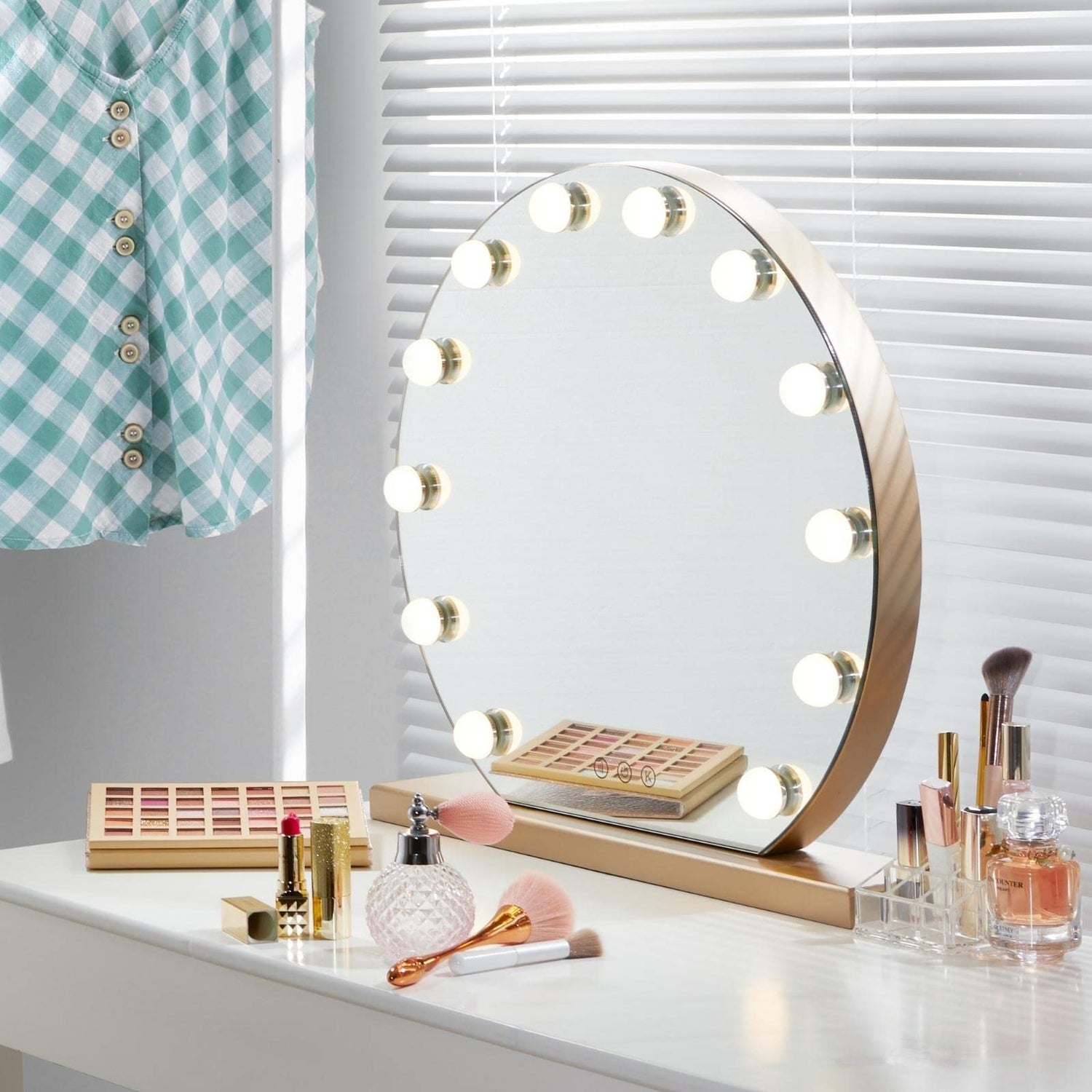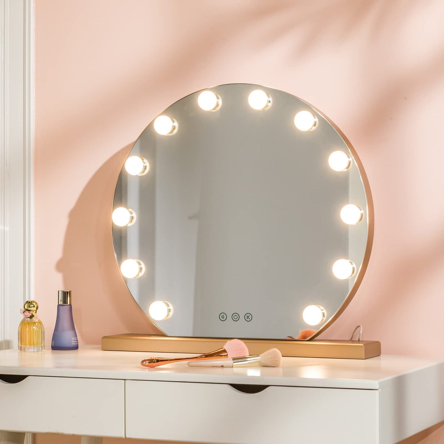 Vanity Mirror with 12 LED Lights, 20 Inch Hollywood Lighted Makeup Mirror for Dressing Room, Tabletop (Gold)