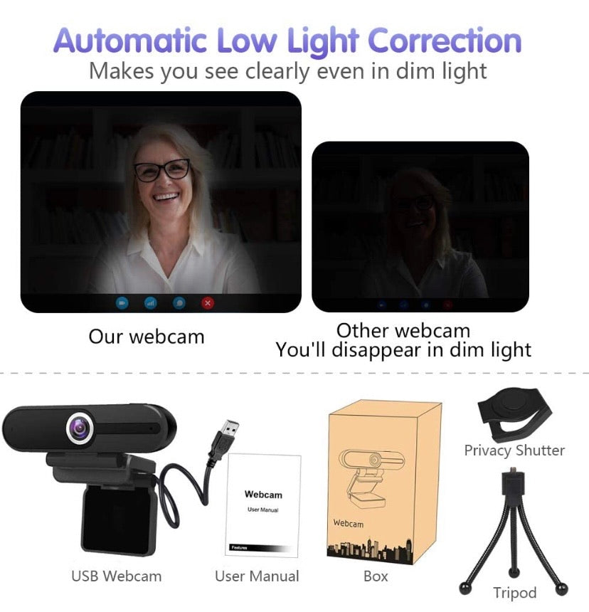 - 👍【Automatic low-light correction】: Webcam with Automatic low-light correction, still supply clear image even in a dim area, let you have different experience. idea for skype / youtube, ZOOM, Twitch, Facebook Live, OBS, XSplit, etc. make the video play fluently, making it easier for you to share your videos with your fans.